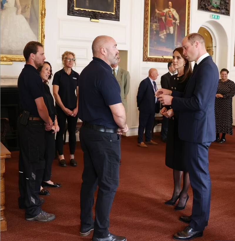 Kate Middleton y el príncipe William asistieron a Windsor Guildhall, tres días después del funeral de la reina Isabel II, para hablar con el personal y los voluntarios que ayudaron a organizar y ejecutar el servicio de entierro en la Capilla de San Jorge en Winsdor el lunes.