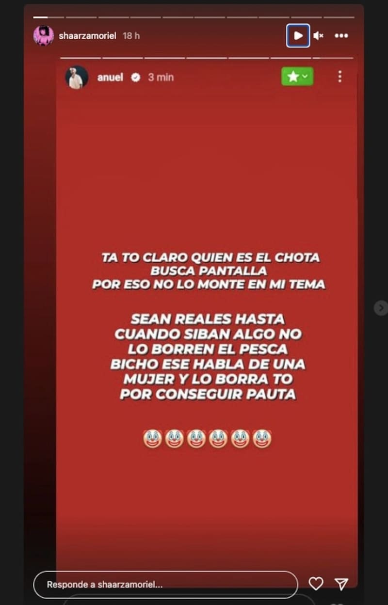 “Sean reales hasta cuando suban algo, no lo borren, el pesca bicho ese habla de una mujer y lo borra to por conseguir pauta”, compartió Moriel en su red social", compartió la influencer en su historias de instagram