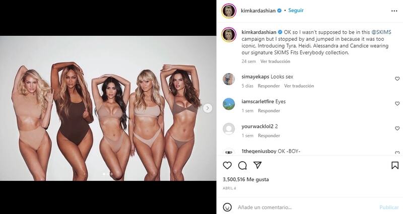 En la cuenta de Instagram de Kim Kardashian, la celebridad mostró a las cuatro modelos reunidas para la campaña y escribió: "Está bien, se suponía que no debía estar en esta campaña de @SKIMS, pero pasé y me sumé porque era demasiado icónico".