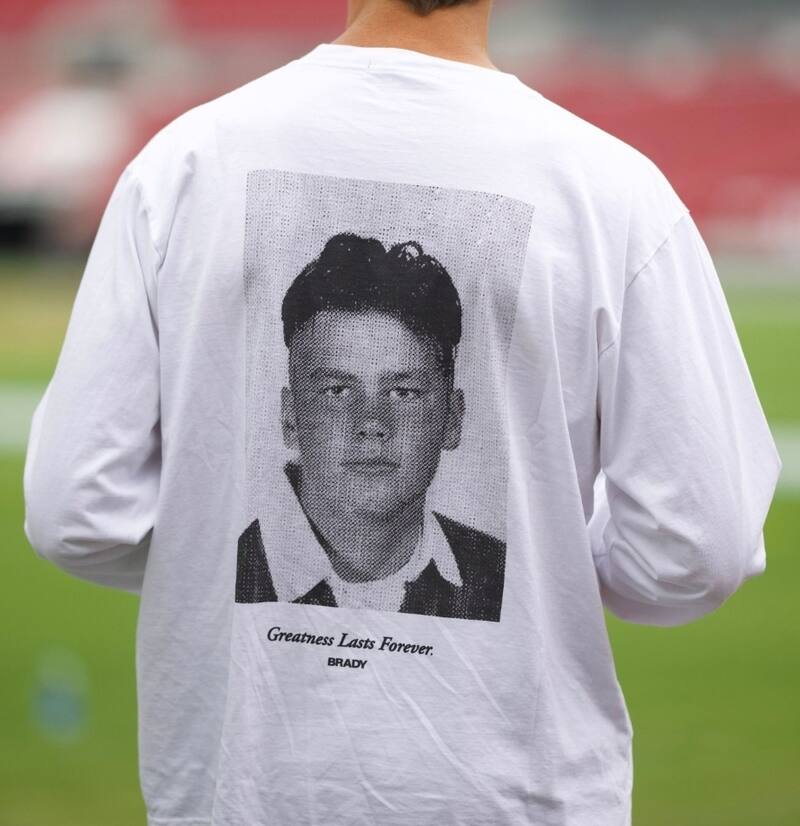 Brady fue visto durante los calentamientos previos al juego con una camiseta que tenía su foto de la escuela secundaria, con el mensaje "La grandeza dura para siempre". En un video publicado en las redes sociales antes de que el equipo saliera oficialmente al campo, se vio a Brady hablando y abrazando a sus hijos mientras le deseaban suerte en el primer partido en casa.