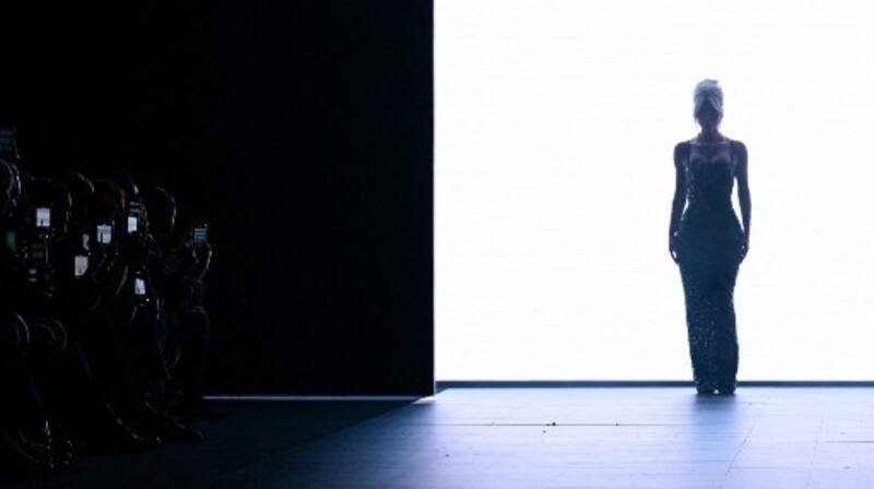 Las modelos desfilaron para la colección del título "Ciao Kim", la cual tenía música rítmica de fondo, cuyos temas fueron elegidos por la empresaria estadounidense de los archivos que tiene la casa de moda de los años 1987 a 2007, por lo que algunas fueron piezas históricas.