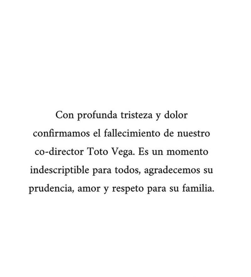 A las condolencias se han unido periodistas, políticos -incluidos el presidente Gustavo Petro y la vicepresidenta Francia Márquez-, además de miles de seguidores que lamentan la sorpresiva partida del artista. La cuenta de Twitter del fotógrafo y estratega "Consuma Ciudad" registró en video la presentación del discurso final de Toto Vega.
