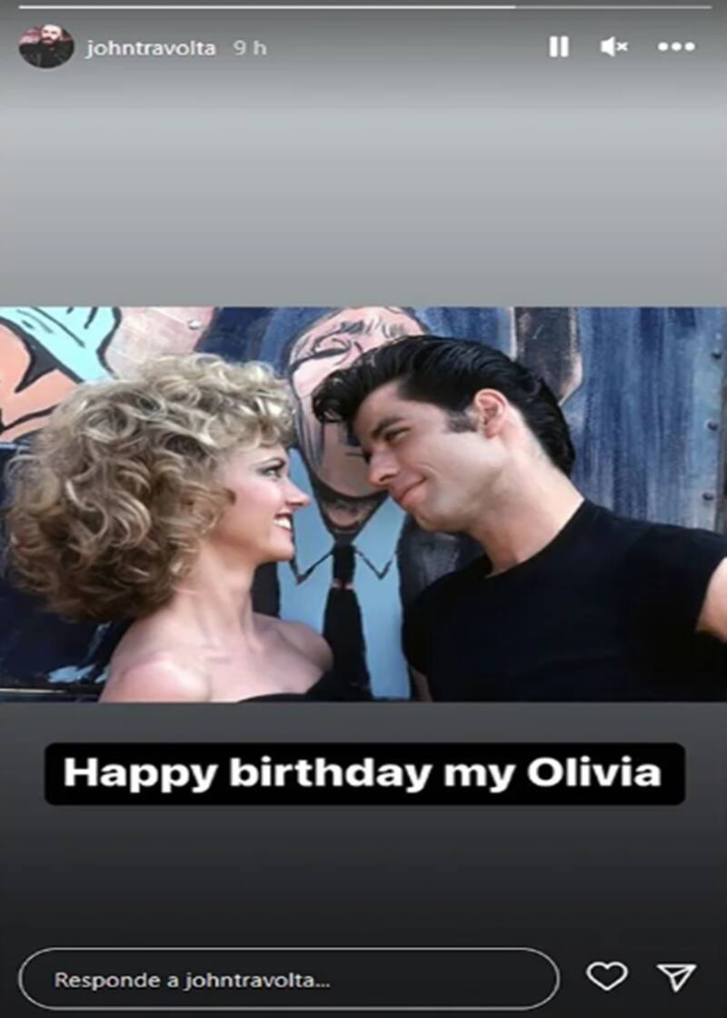 "Feliz cumpleaños, mi Olivia", escribió Travolta en un pie de foto escrito debajo de la foto de ambos como sus icónicos personajes de "Grease", Danny Zuko y Sandy Olsson.