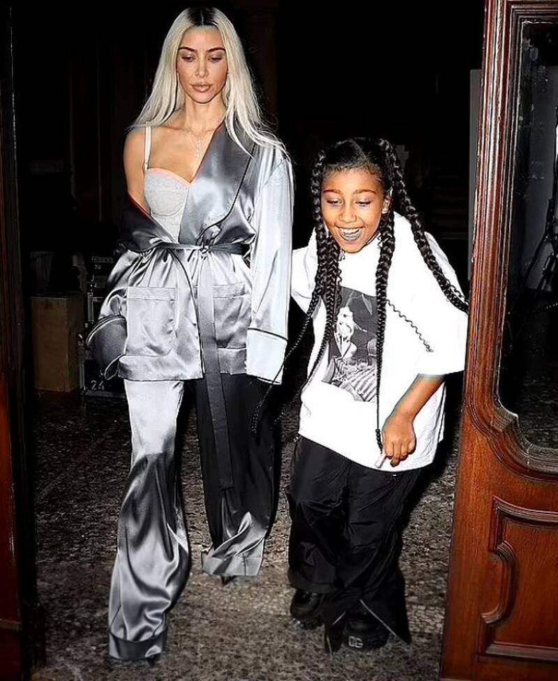 Por su parte, North, a quien comparte con su exesposo, Kanye West, fue fotografiada con una camiseta blanca de manga corta de la colección Ciao, Kim Dolce & Gabbana de su madre. North combinó la camisa con pantalones negros y un par de zapatos con plataforma Dolce & Gabbana.