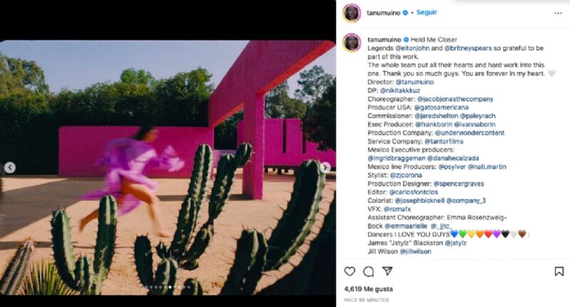 "Fue muy emotivo para mí, ya que crecí con Britney. Después de ver 'Slave For You', decidí que quería convertirme en directora de videos. Elton John es un ícono que yo y el mundo crecimos escuchando”, dijo Tanu, cineasta ucraniana que también dirigió "As It Was", de Harry Styles.