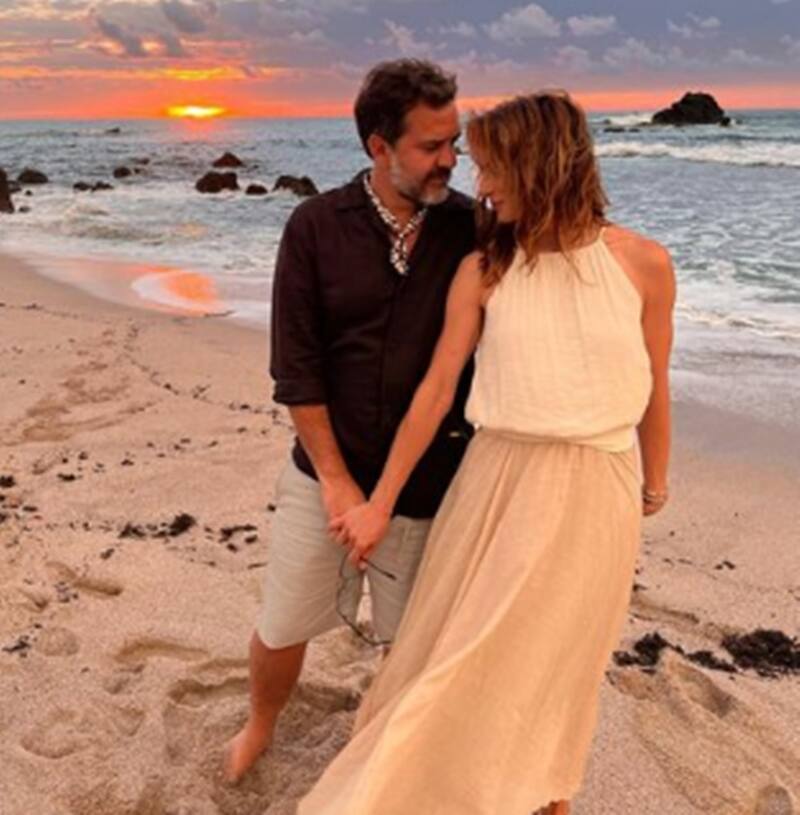 A través de sus redes sociales, la actriz compartió un par de imágenes, desde la playa en compañía de Medina, las cuales acompañó con la leyenda: "Y sí, aquí hay amor" seguida de un corazón naranja.