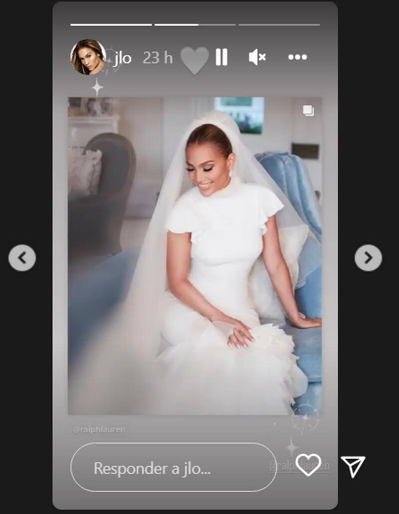 Comencemos con Jennifer Lopez, quien sorprendió a sus fans de su sitio "On The JLo", pero también en Instagram al compartir una foto inédita de su vestido de la lujosa boda con Ben Affleck.