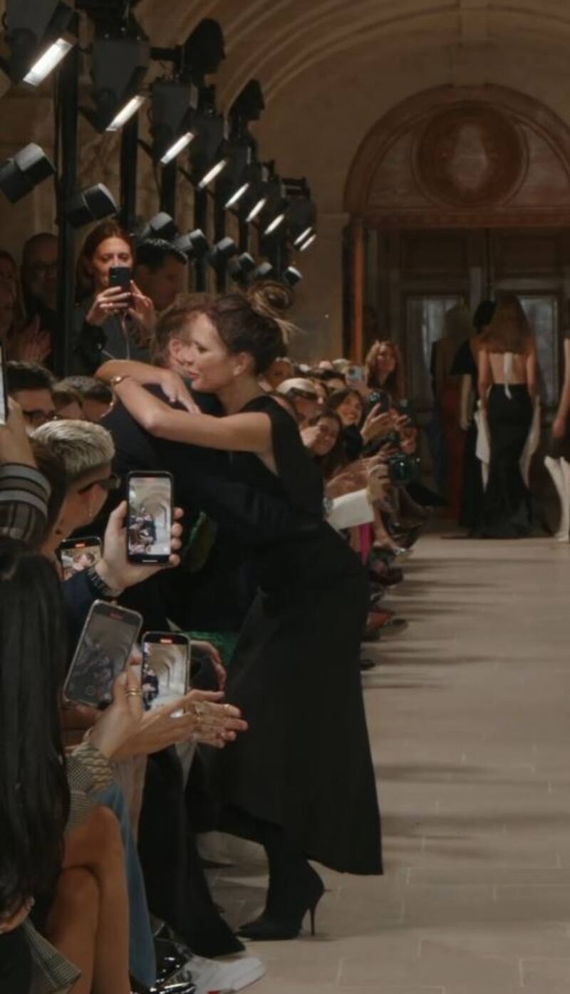 Minutos más tarde transmitió en vivo a través de sus canales de comunicación el desfile. Al finalizar el evento Victoria Beckham se vio conmovida y rompió el llanto. Su amado esposo, se acercó a ella y le dio un cálido abrazo para tranquilizarla.