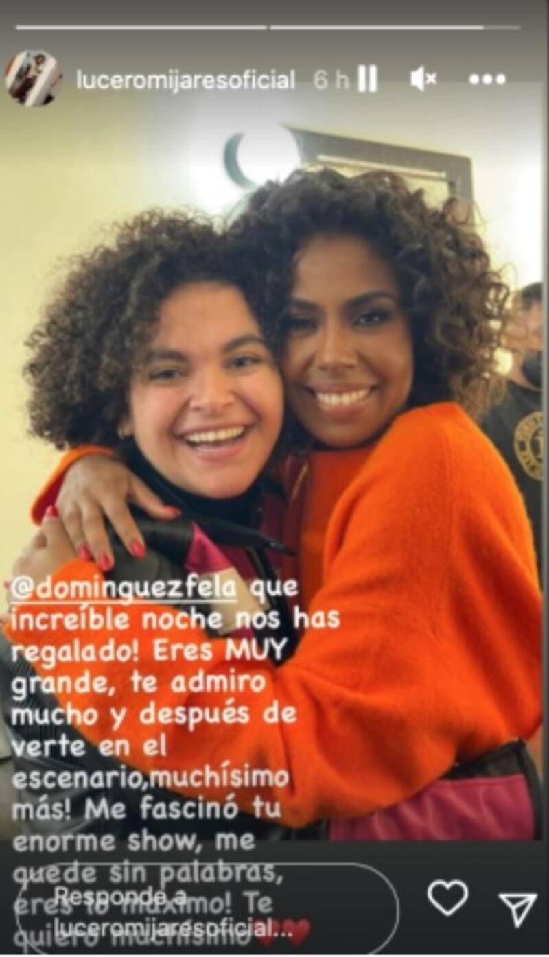 A través de redes sociales, Lucerito Mijares compartió fotos del emotivo encuentro que tuvo con Fela Domínguez, de quien se dijo ser su gran admiradora, pues ha tenido la oportunidad de verla en el escenario varias veces.