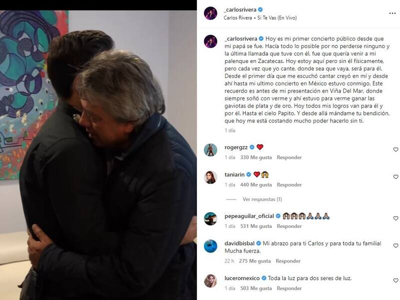En redes sociales se filtraron videos de su presentación en el palenque de Zacatecas, en donde hizo una mención a su padre. Con la voz entrecortada, Carlos Rivera, agradeció al público por su presencia, reiteró que éste sería uno de los conciertos más difíciles de hacer porque ya no está su papá con él físicamente.