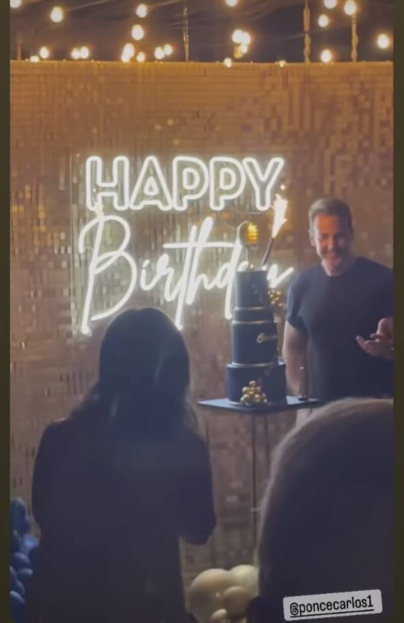 "Gracias mi Kariñito por esta reunión", escribió el actor para agradecer a su pareja por la sorpresa que sin duda lo mantuvo hasta altas horas de la madrugada celebrando y donde no podía faltar el pastel.