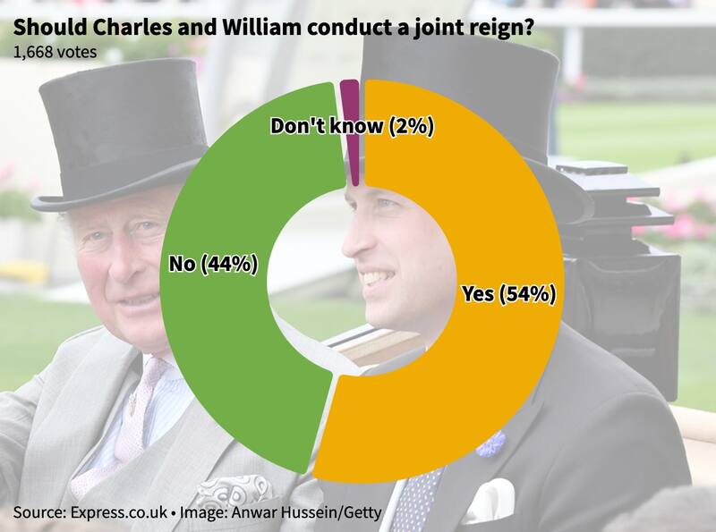 El medio Express condujo una encuesta en donde 54% de las personas votaron que sí, William y Carlos deberían ser reyes juntos. Hasta el momento de su muerte, la Reina no se pronunció acerca de la idea, aunque normalmente no comentaba sobre temas de este tipo.