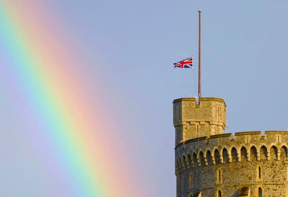En el castillo de Windsor se colocó la bandera a media asta, como marca el protocolo ante el fallecimiento de la reina Isabel, y ocurrió un fenómeno óptico y metereológico muy simbólico: apareció un arcoíris en el cielo poco después del anuncio de su muerte.