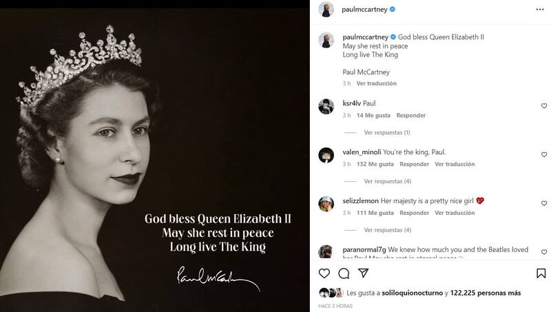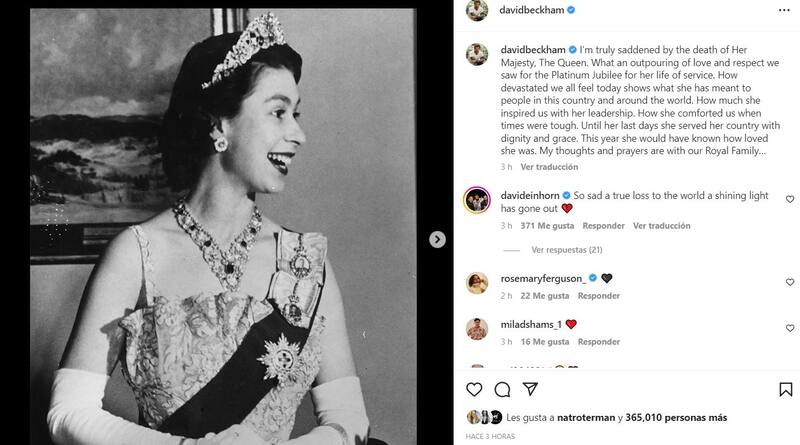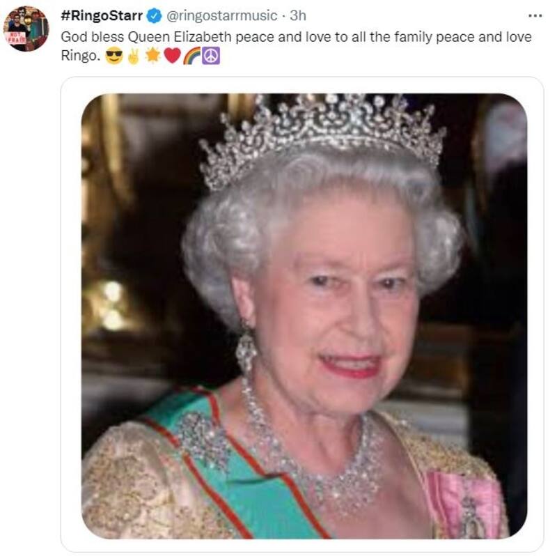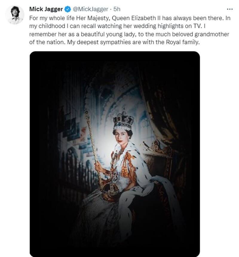 A través de redes sociales figuras del espectáculo lamentaron la muerte de su majestad y con sensibles mensajes honraron su memoria, entre ellos Elton John, Mick Jagger, Victoria Beckham, Lily Collins, Ozzy Osbourne, Janet Jackson, Duran Duran, Paul Mccartney, Pelé, Kris Jenner.
