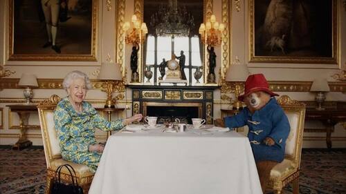 Durante las celebraciones por los setenta años en el trono de Isabel II, la reina volvió a sorprender por su salida humorística, tal como como lo había hecho con Daniel Craig en la justa olímpica. Isabel II, quien debido a sus problemas de movilidad tuvo pocas apariciones durante su Jubileo de Platino, sorprendió con un video en el que compartió el té con el Oso Paddington en el Palacio de Buckingham.