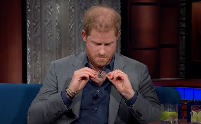 Días después de que el relato saliera a relucir, el príncipe Harry se presentó en una entrevista con Stephen Colbert, a quien mostró por primera vez el collar que su hermano le rompió durante la acalorada pelea. "Se habla mucho sobre la pelea física que tuvieron ustedes dos, dónde el te empujo al suelo en la cocina y rompió el plato del perro cuando caiste sobre el. Dices que rompió tu colla. ¿Qué collar era el que rompió?", preguntó el presentador de "The Late Show".