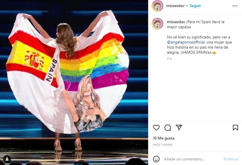 Faubel, representante de España, aprovechó su capa para enviar un mensaje a la comunidad LGBTQ+ y recordó a Ángela Ponce.