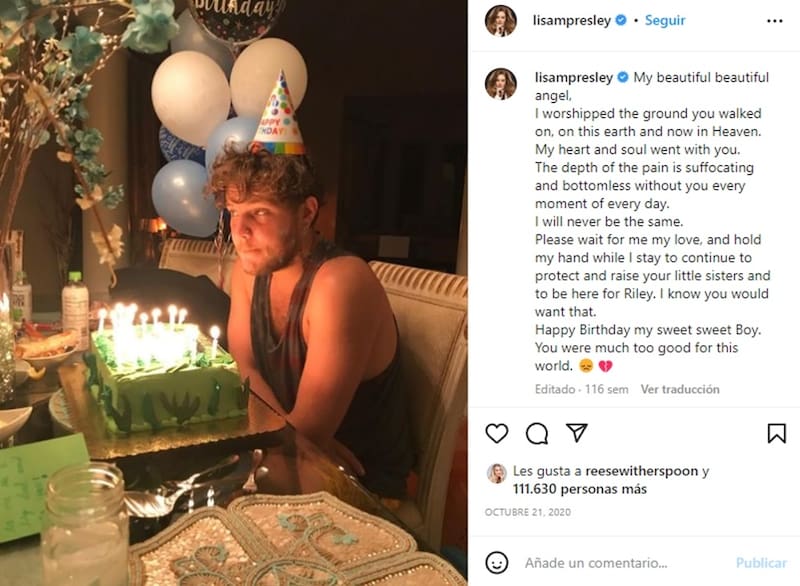 "Mi hermoso hermoso ángel. Adoré el suelo que pisaste, en esta tierra y ahora en el cielo. Mi corazón y mi alma se fueron contigo. La profundidad del dolor es sofocante sin fondo y sin ti en cada momento de cada día. Nunca seré la misma", declaró Marie Presley en un post de Instagram que finalizó con una felicitación para su hijo.