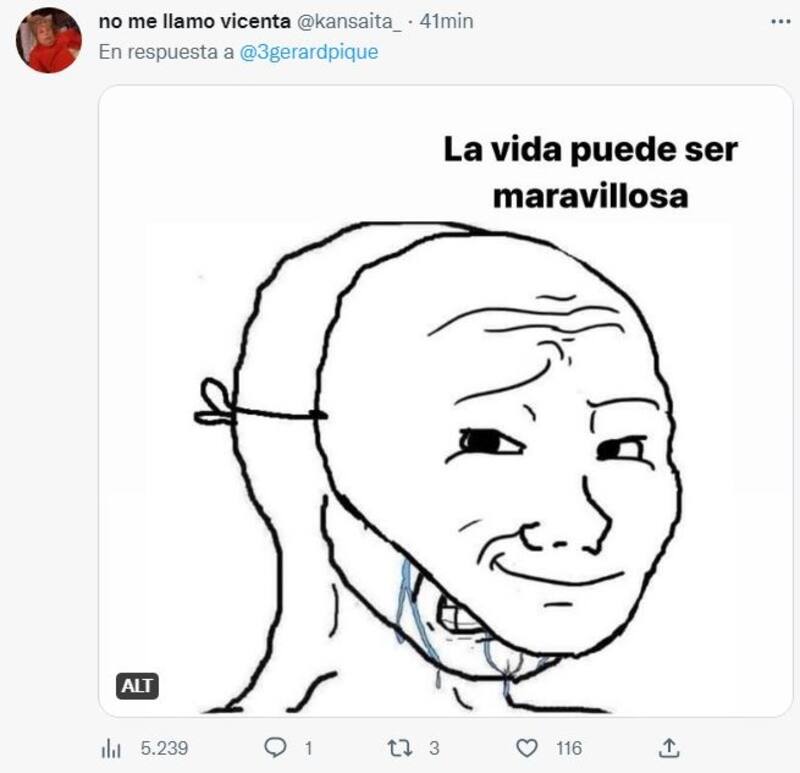 "Analizando el juegos de palabras, creo q claramente es Shakira": "No, te la pela una auténtica barbaridad ver el mundo arder"; Ay cállateeeeeeee, te destrozaron mijo, no tienes ni gracia. Besos, Shak"; "No sabía que los fantasmas podían twitear! RIP PIQUÉ, no tires de la cuerda que te puede ir peor…", fueron algunos de los mensajes.