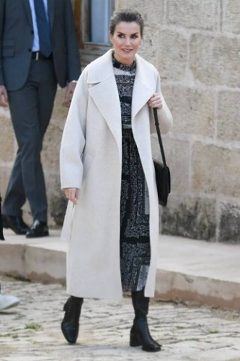 En esta visita, la reina consorte demostró por qué es referente de estilismo y moda, pues lució un outfit perfecto para protegerse del frío sin perder el estilo con un vestido midi y botas altas.