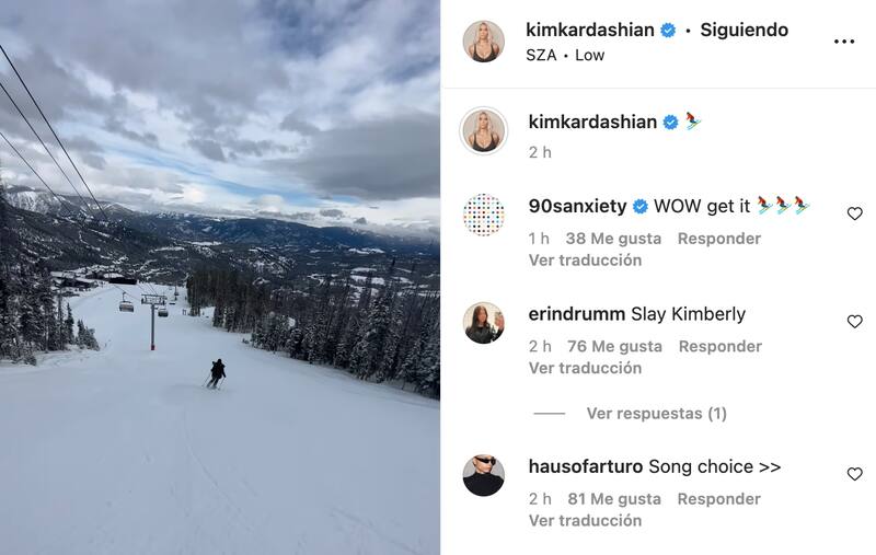 A diferencia de Shakira, la socialité no sacó una canción de su autoría, pero compartió un video en el que se le ve esquiando y agregó una canción que podría ser una gran indirecta a Kanye West. Se trata de "Low" de SZA, quien además recientemente estrenó su álbum "SOS".