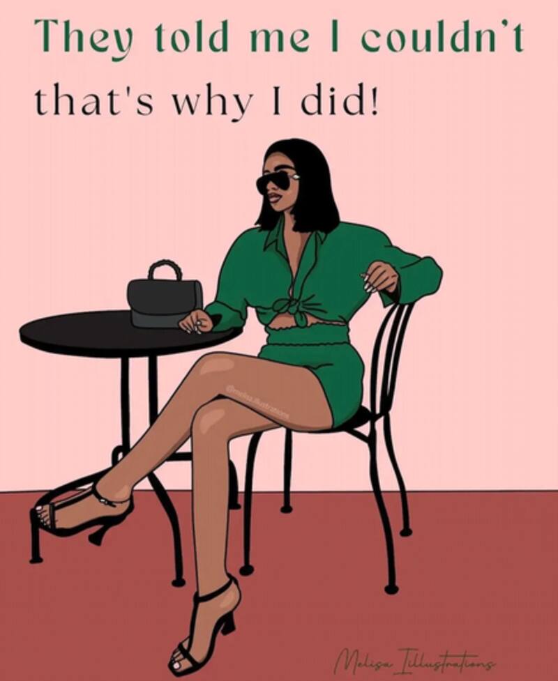 La cantante recurrió a Instagram este sábado para compartir la ilustración de una mujer sentada en una mesa con su bolsa sobre ella. En la leyenda se lee "me dijeron que no podía así que lo hice".