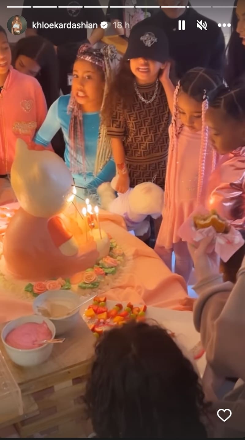 La familia fue captada en varias historias publicadas por Khloé Kardashian en donde se pudo evidenciar que no escatimaron en gastos para la celebración de la pequeña, que tuvo una fiesta de tema Hello Kitty.