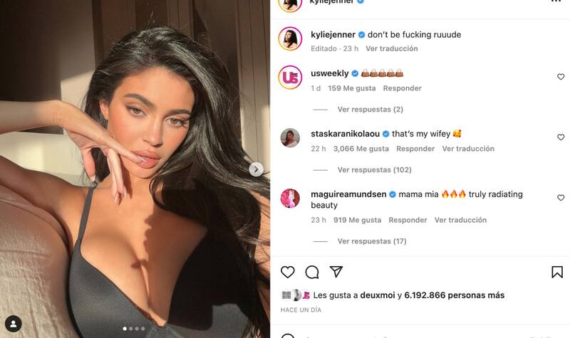 La publicación de la socialité rápidamente alcanzó millones de likes además de comentarios en los que halagaban su belleza. Sin embargo, también se hicieron presentes aquellos que aseguraron las fotografías fueron dedicadas a Travis Scott: "¿Por qué posas asó? Seguro extrañas a Travis", "Muéstrale a Travis lo que se pierde", entre otros.