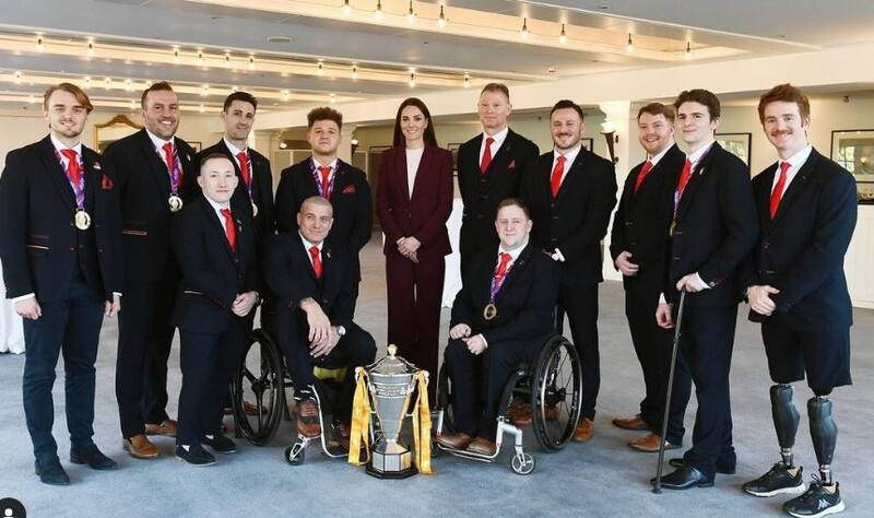 Kate Middleton como anfitriona de la Rugby Football League recibió este jueves en el Palacio de Hampton Court al equipo ganador de la Copa del Mundo de noviembre pasado.