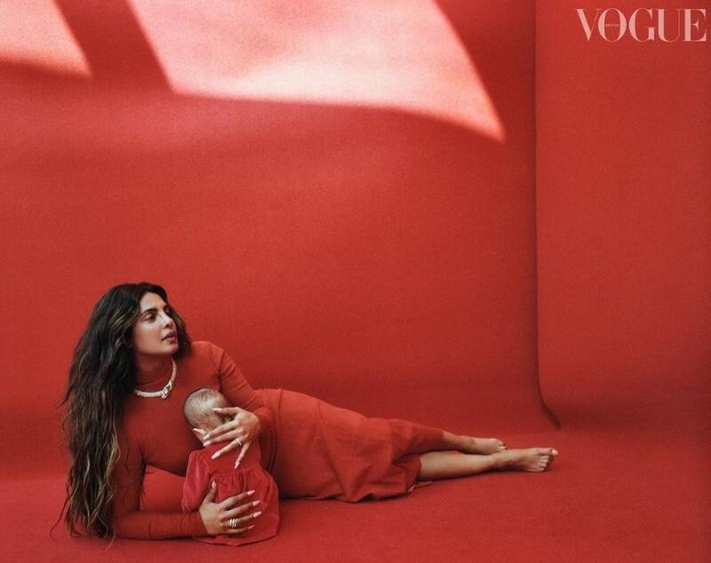 Como un regalo extra para los lectores Priyanka posó por primera vez con su hija de un año de nacida, Malti Marie al interior de la edición sin mostrar su rostro. Madre e hija posan con atuendos en color rojo que hacían juego con el fondo del estudio.