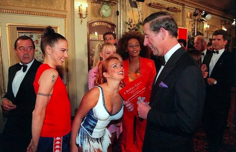Las chicas del grupo estaban muy emocionadas de conocerlo en un acto de la fundación "The Price's Trust". No pudieron contener la etiqueta que marca el protocolo real y dos de ellas, Geri y Mel B, se atrevieron a cruzar la línea que nadie había cruzado y plantaron dos besos color carmín en las mejillas del príncipe heredero.