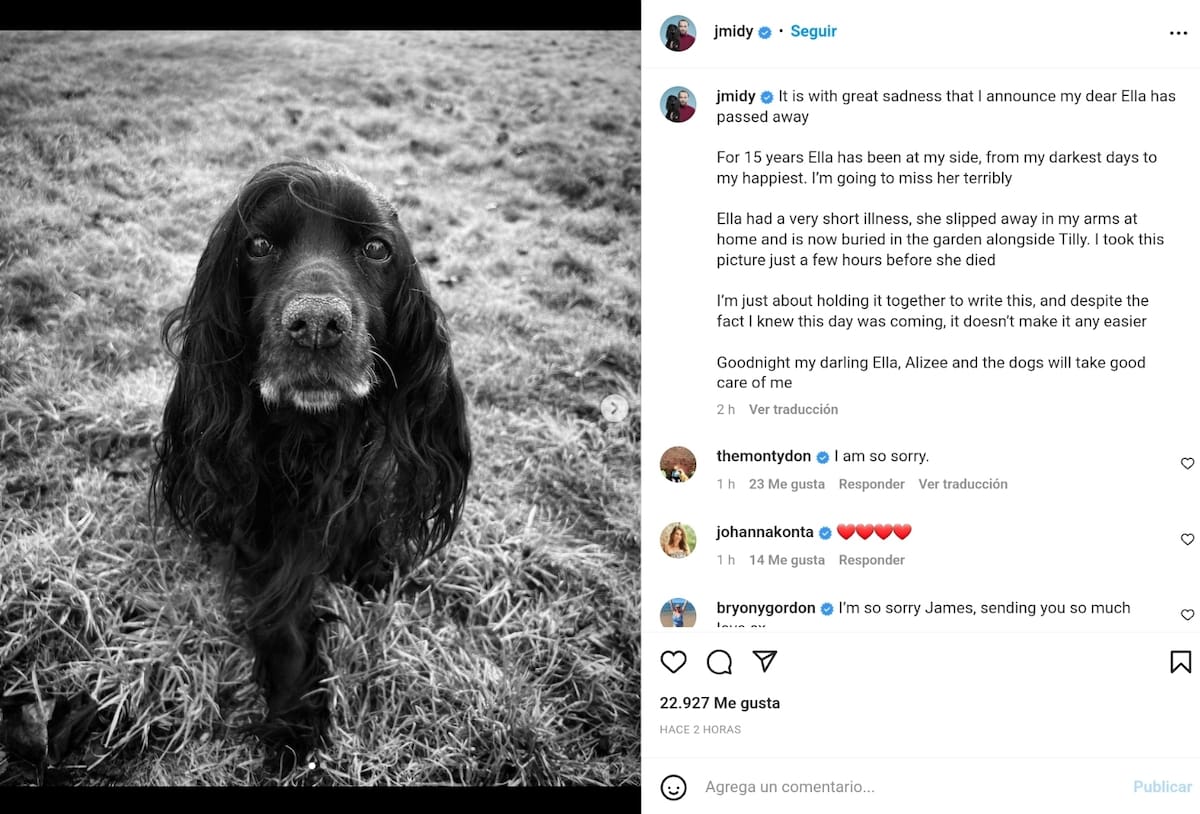 James, hermano de Kate Middleton, compartió una triste noticia con todos sus seguidores, pues su mejor amiga y compañera de vida falleció. Se trata de su querida mascota Ella, quien la acompañó en sus momentos más oscuros y felices de su vida.