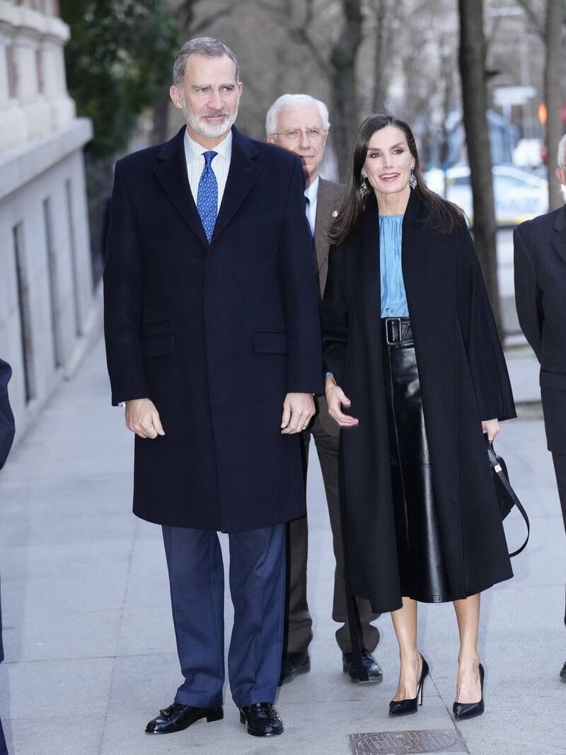 A su regreso de Atenas, Grecia, para asistir al funeral del rey Constantino, la reina Letizia presidió junto al rey Felipe un acto en la Real Academia Española en Madrid, en el que coincidió con el escritor Mario Vargas Llosa.
