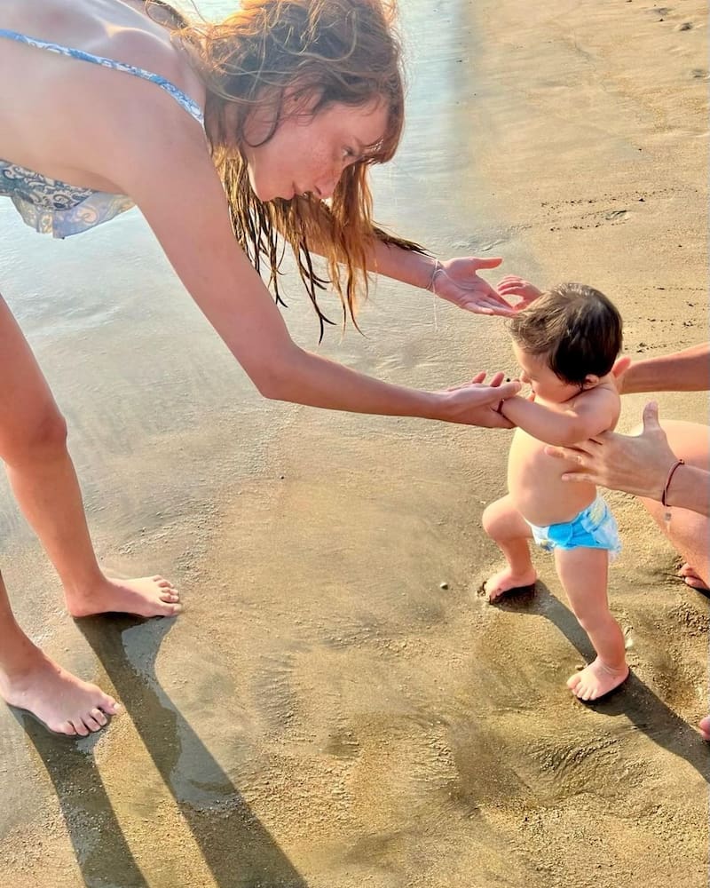 A través de su perfil de Instagram, Natalia compartió una serie de fotografías en las que se mostró en distintas etapas de su maternidad, pero la que más llamó la atención fue una fotografía de sus recientes vacaciones en la Riviera Nayarit, en la que se puede observar a Natalia y Antonio caminando por la orilla del mar, tomando de las manos a Emilia, quien comienza a dar sus primeros pasitos.