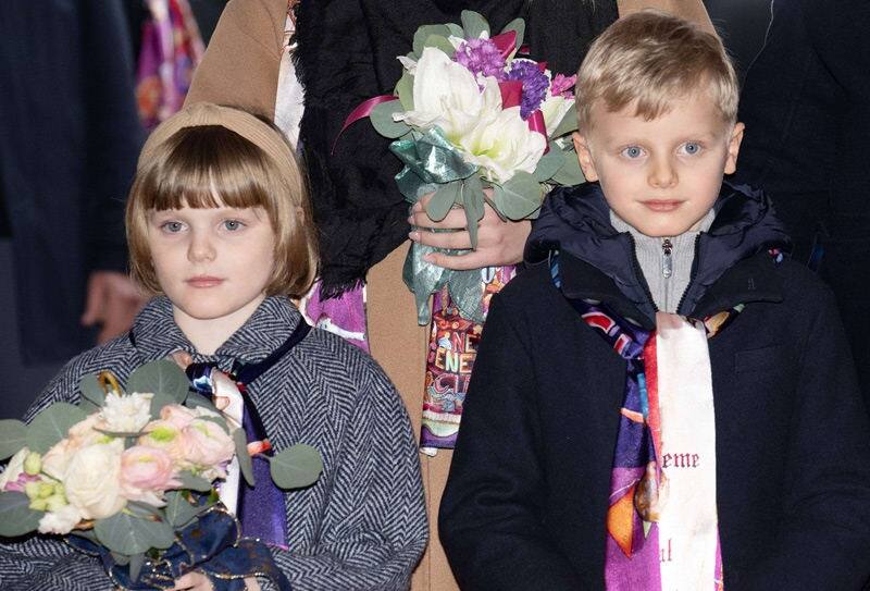 Para la ocasión, Jacques de Mónaco llevaba un abrigo con capucha de color azul marino, vaqueros grises y botas negras, mientras que su hermana lució por un abrigo estampado.