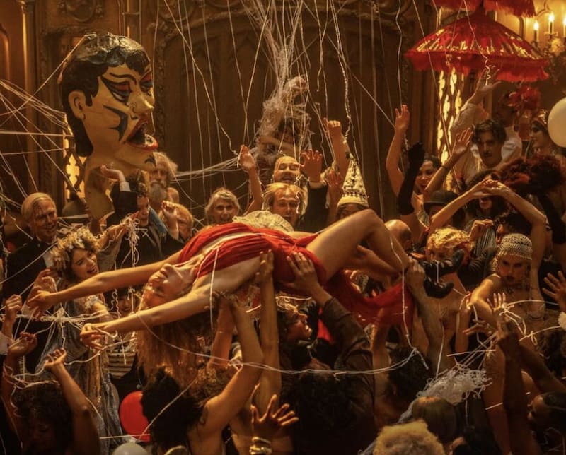 En medio de las fiestas realizadas en la década señalada por la película muestran diversos espacios para las fiestas lujosas y colmadas de libertinaje.