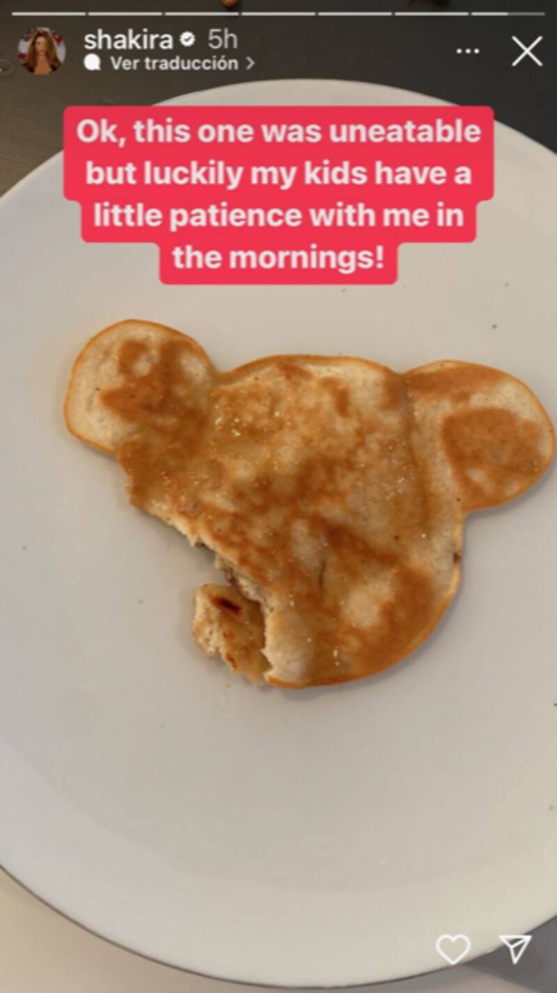 Luego en otra foto relacionada, aparece una tortilla masticada, a lo que Shakira añadió: "De acuerdo, este era incomestible, pero por suerte mis hijos tienen paciencia conmigo por la mañana".