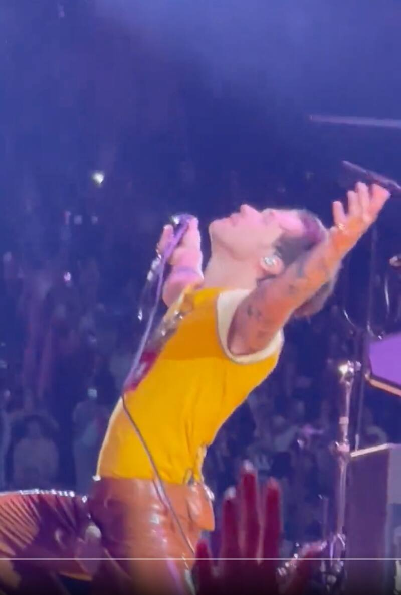 Sin embargo, mientras el cantante de “As It Was” se arrodillaba frente a un grupo de fans con unos pantalones color amarillo de cuero, parece que estaban desgastados de la entrepierna, pues se rompieron.
