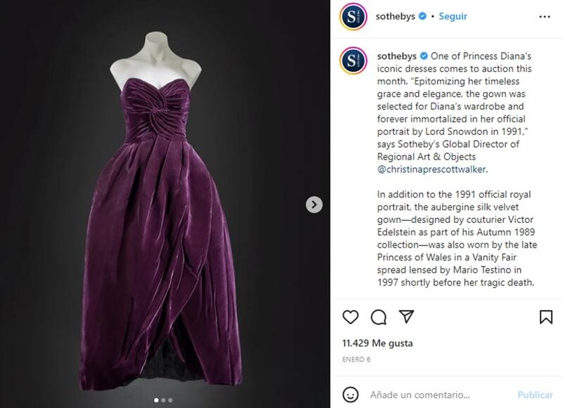 Cabe señalar que dicho vestido se exhibía en el vestíbulo del Royal Marsden tras venderlo por 24.150 dólares en 1997, peo el pasado viernes 27 de enero volvió a salir a subasta en Sotheby's como parte de su venta “The One” con objetos icónicos de la historia.