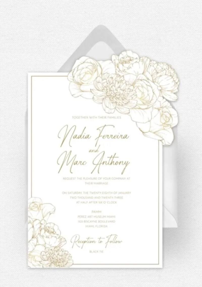 En las horas previas a la unión, en redes sociales empezó a circular la que sería la invitación formal al matrimonio de la modelo y el cantante. En ella se detallaba el dress code para los asistentes que llegaron al Museo de Arte Pamm Pérez en Miami, Florida, .