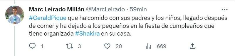 Horas después y en medio de las especulaciones sobre si estaría invitado al festejo del menor, llegó a la casa de Shakira dejó a sus hijos y se retiró, así lo informó el periodista Marc Leirado Millán en su cuenta de Twitter.