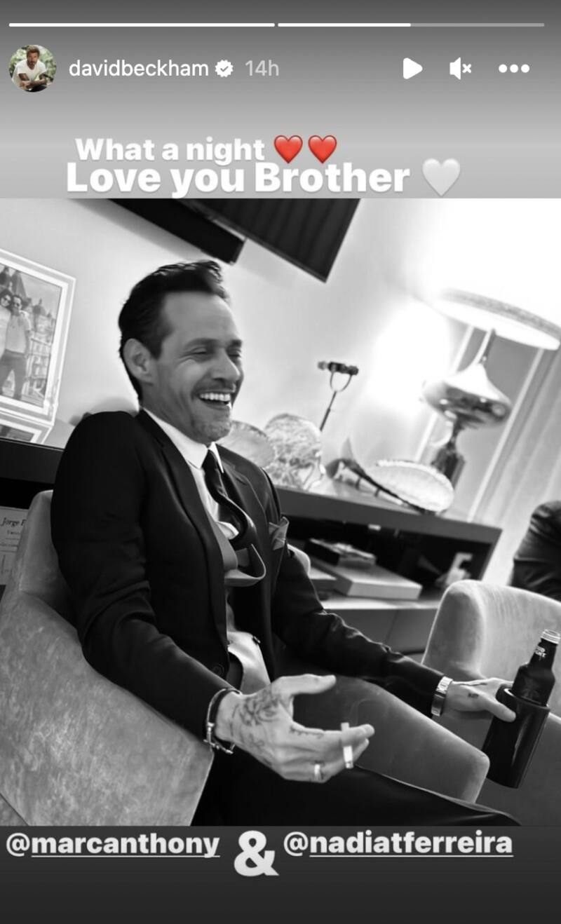 La boda de ensueño también contó con una lista de invitados cargada de estrellas, incluidos David Beckham y su hijo Cruz Beckham, el colombiano Maluma, Salma Hayek, Lin-Manuel Miranda y Luis Fonsi.