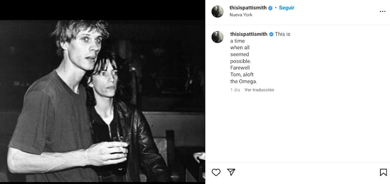 Patti Smith escribió, al lado de una foto de ambos: "Adiós Tom, en lo alto del Omega".