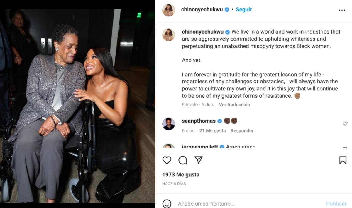 "Vivimos en un mundo y trabajamos en industrias que están tan agresivamente comprometidas con defender la blancura y perpetuar una misoginia descarada hacia las mujeres negras", dijo. "Y todavía. Siempre estaré agradecida por la mayor lección de mi vida: independientemente de cualquier desafío u obstáculo, siempre tendré el poder de cultivar mi propia alegría, y es esta alegría la que seguirá siendo una de mis mayores formas de resistencia".