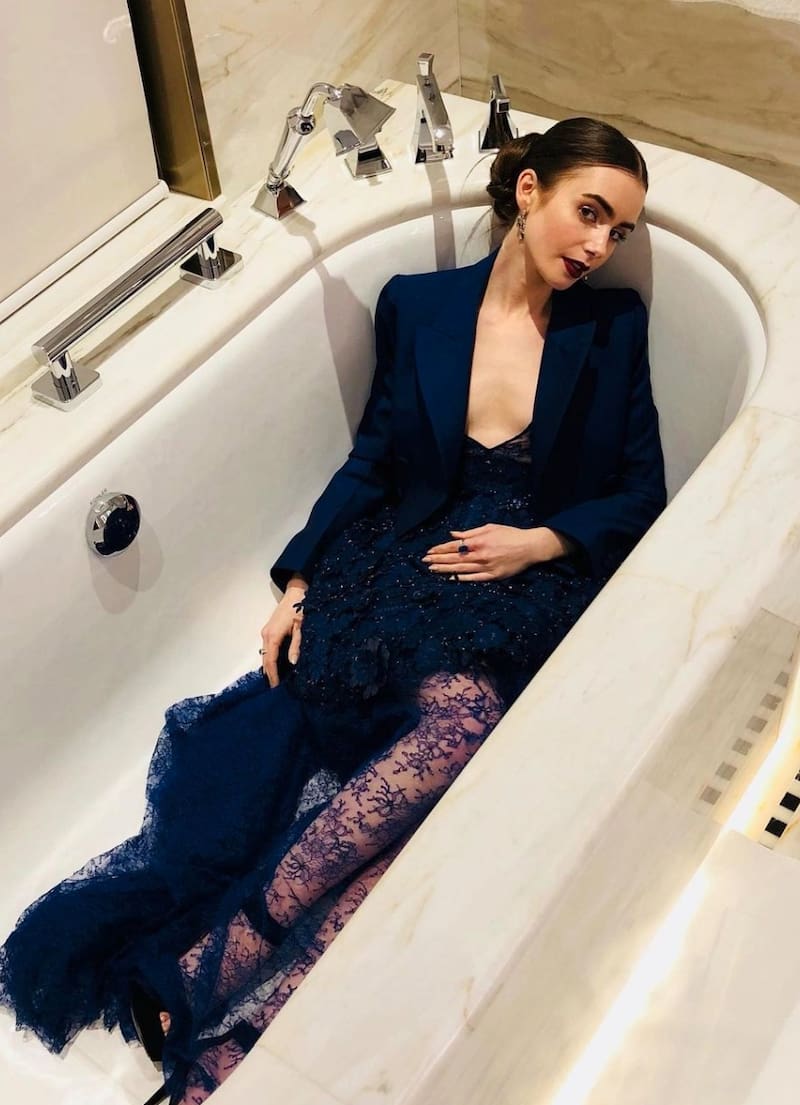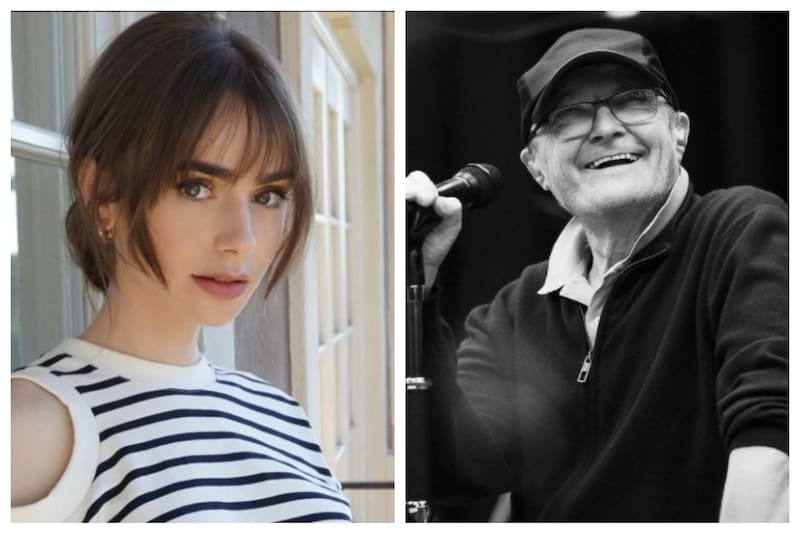 En una de las fotos, el cantante de “In The Air Tonight” aparece viendo a la cámara mientras se acostaba dentro de una tina. Ella lo comparó con una foto suya, en donde aparece con un outfit azul dentro de una tina. La actriz de “Emily en París” también mostró cómo se ha inspirado en su talentoso padre para vestirse de maneras creativas y compartió varias imágenes de cómo se visten de manera parecida.