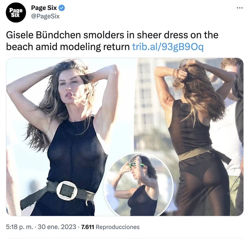 A principios de este mes, Bündchen encabezó la campaña de la colección Yayoi Kusama de Louis Vuitton, posando en topless con jeans mientras modelaba la nueva colección de bolsos. Desde entonces, se la ha visto en Miami, primero con un bañador violeta de una pieza y ahora con un vestido negro transparente con el que demuestra por qué es una de las mejores modelos del mundo.