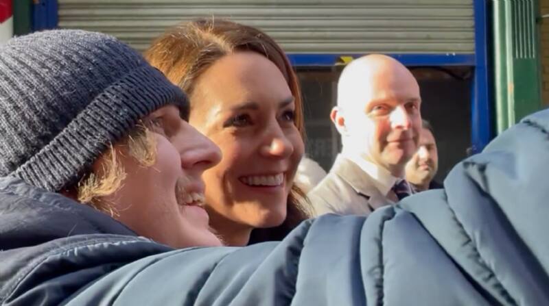 En el video se escucha al hombre preguntarle a Kate Middleton si podría tomarse una foto con ella a lo que la princesa de Gales respondió: “Sí, sí puedes, muy rápido”. Mientras su admirados sacaba el teléfono le confesó que estaba nervioso y que por favor lo disculpara a lo que la esposa del príncipe William muy calmada y sonriente dijo: “Por favor no te preocupes. Está bien, todos nos ponemos nerviosos” y terminó por agregar que había sido un gusto en conocerlo.