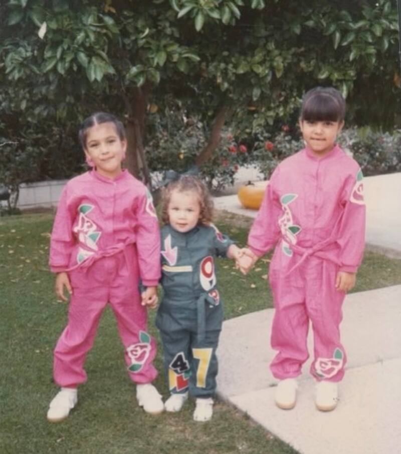 La tarde de este martes Kim Kardashian compartió una fotografía del baúl de los recuerdos en la que aparece junto a Kourtney y Khloé. En la imagen se ve el trio cuando apenas eras unas niñas vistiendo con overoles completos rosas y verde.