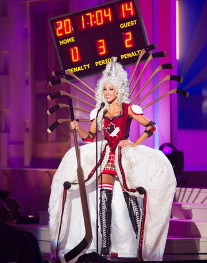 Miss Canadá 2015, Chanel Beckenlehner, traje inspirado en el hockey.