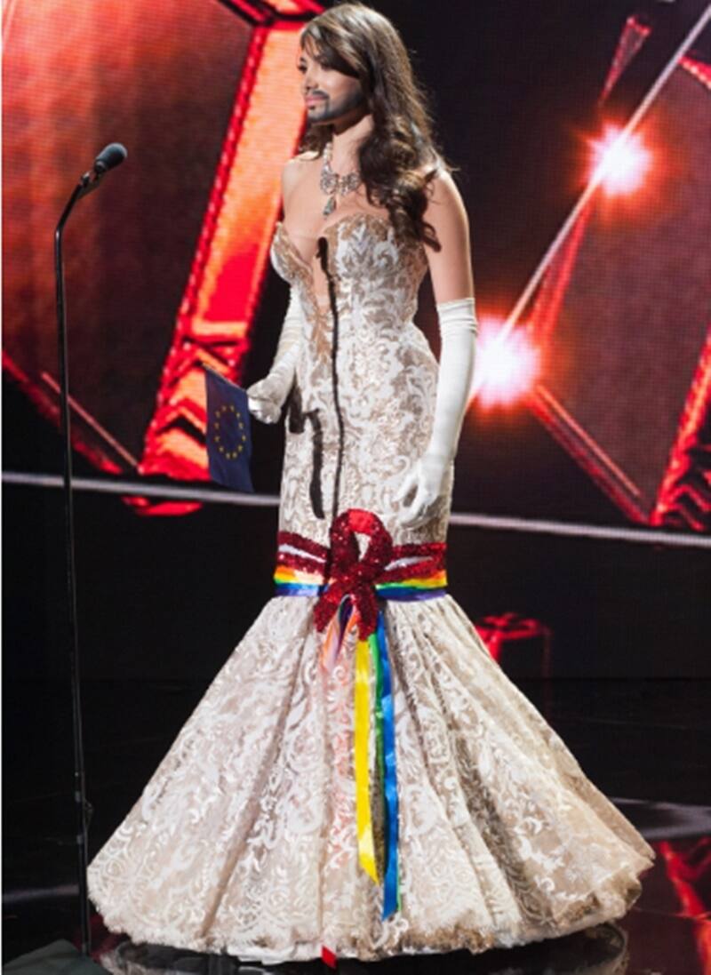 Miss Austria 2015, Amina Dagi, traje inspirado en Conchita Wurst tras su triunfo en Eurovisión.